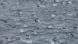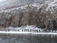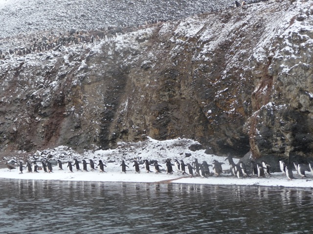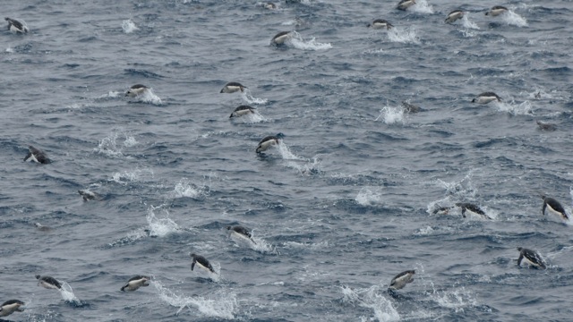 As we cruised along there was a continual display of dramatic icebergs loaded with penguins diving into the water